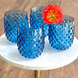 These beautiful stemless blue tumbler glasses pay homage to the past with their classic textured hobnail pattern. But in a modern twist, each goblet is formed of textured acrylic, for everyday ease, both indoors and out. The perfect choice for worry-free outdoor dining poolside and beyond! Sturdy in hand and comfortable to grip, these premium acrylic glasses will soon become an entertaining essential.