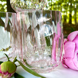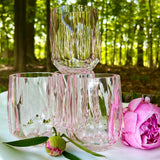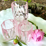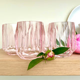 These beautiful outdoor glasses exhibit a modern acrylic prismatic form interpreted in a surprising yet sophisticated soft pink hue. Delivering outstanding luminosity, these acrylic drinking tumblers are eye catching showstoppers wherever they are placed, reflecting light and shadow in every direction.to us, they are reminiscent of a waterfall.