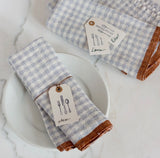 Gingham Linen Napkins in Blue and Cognac Set of 4