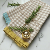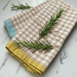 Gingham Linen Tea Towel in Sand & Dijon Yellow Last One!