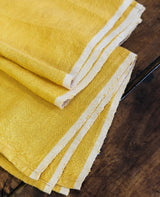 We fell instantly for these robust chunky linen kitchen towels with their sophisticated warm honey yellow hue and contrasting white edge detailing. These luxurious heavyweight linen towels deliver a fresh and invigorating boost to any kitchen or pantry. Crafted from a weighty full-bodied handmade linen, these striking tea towels are both pleasing to the eye and indulgent to the touch. Entirely handmade, these towels boast an approachable naturaliy relaxed aesthetic. Nodding to vintage French nostalgia, these tea towels will quickly become an instant favorite.