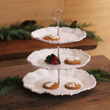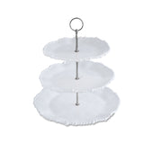 This luminous triple tiered server from Beatriz Ball's Alegria Collection offers a statement focal point place from which to serve light bites, desserts and so much more! With signature pearl rim detailing, three generous serving areas in graduated sizes are joined by a detailed silver-toned metal riser and topped by a loop handle. An elegant way to present any culinary creation and a beautiful gift. With a brilliant white lustre finish and generous-proportions, this beautiful melamine tiered server is a welcome complement to any serving table, for any occasion. Perfectly mimicking a ceramic piece, this pretty server is formed of luxury melamine, ideally suited for use indoors and out. Casual, easy elegance for every day. Quickly disassembles for ease of storage.