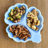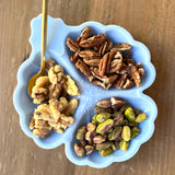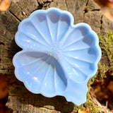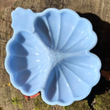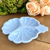 In the classic beautiful blue hue, this small divided serving plate is a beautiful example of vintage blue delphite. Its unique ribbed detailing lends an organic form mimicking nature. The divided tray’s captivating inimitable milky delphinium blue color will be the talk of the table at every meal you serve. We especially love at the buffet table, garden party or afternoon tea, filled with a small portion of assorted nuts. We also love housing guest soaps in the bath!