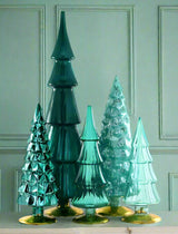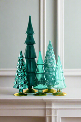 By designer Cody Foster, this stunning set of glass winter wonderland trees in modem teal hues deliver artful sophistication to your seasonal decor. Formed of shapely glass and grand in scale, these luminous beauties are showstoppers on the mantel, in the entry way, on the table and beyond. And they will keep the enchantment of winter going long after the holidays are over.