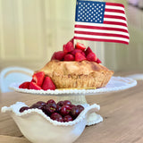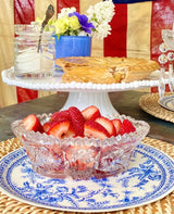 Enhanced with signature pearl detail, the Alegria Pedestal Cake Plate by Beatriz Ball is the essence of casual elegance in shimmering white melamine. A natural for cakes and other baked goods, this beautiful melamine pedestal works equally well for grazing plates, cheeses, canapés and other small bites. AND you can turn it over to have the perfect chip and dip server!