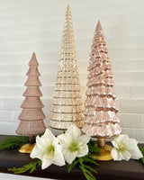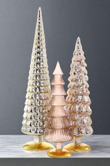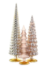 set of includes 3 extra large trees in varying shades of golden champagne in varying heights measuring from 15-24” tall and from 5-7” wide