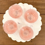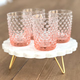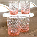 In hand blown splendor, these dishwasher safe statement making hobnail textured tumbler glasses will help you keep you on track to drink more water! Every sip is a treat in these beautifully made artisan vessels in a soft blush pink reminiscent of vintage glass.