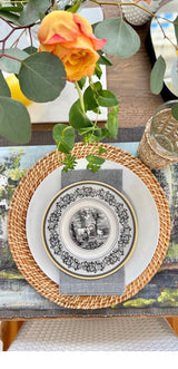 One of our favorite patterns of all time, Audun Ferme by Villeroy & Boch is sophisticated yet timeless in its simplicity. The platter’s serene farm scene in neutral black, grey and white with yellow rim, will be a stunning complement to everything you already own.