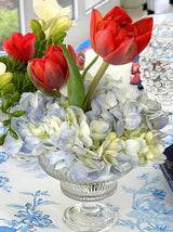 We fell instantly in love with these unique footed glass vessels, each inspired by the shapes and dazzle of crystal chandeliers. Offered in three styles, this vintage style glassware is built for timeless function. We covet their smart design, pedestal silhouettes, exquisite sculptural aesthetic and infinite possibilities!
