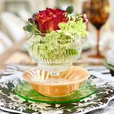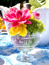 You will receive one glass of each of style as shown to start some tabletop fun! Luminous and elevated with a playful spirit, these footed bowls are perfect for crudités, desserts, dipping sauces, individual charcuterie, signature cocktails and tabletop bouquets. Formed of pressed glass with heavy ribbed texture and weight, each versatile pedestal coupe glass (or bowl!) is substantial in hand, intended to be both admired and enjoyed.