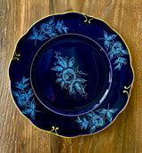 This may just be one of our favorite vintage plates ever! In a luminous deep rich navy blue hue with a softer blue floral and golden highlights, this beautiful echt kobalt plate delivers classic elegance and uncompromising style. Makes a stunning backdrop for a small presentation of culinary treats. Made in Germany. Back is stamped. Circa 1939.